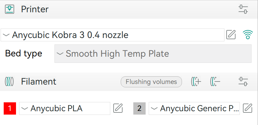 Open the Orca app and ensure that the Anycubic Kobra 3 printer is selected. The printer settings should look like the below screenshot.